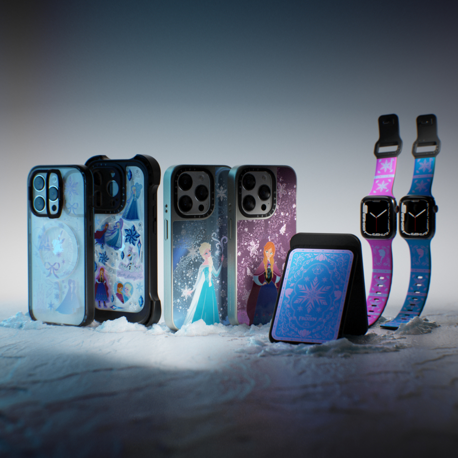 My responsibility after iPhone designs are approved; is to complete the adaptations. Finalized designs must be adapted onto Samsung & Google phones, as well as tech accessories. Below is an example of the Olaf design being adapted; each has a different art board size and must have a layout that best fits each. The end result you can see - creates a more complete and harmonious collection.